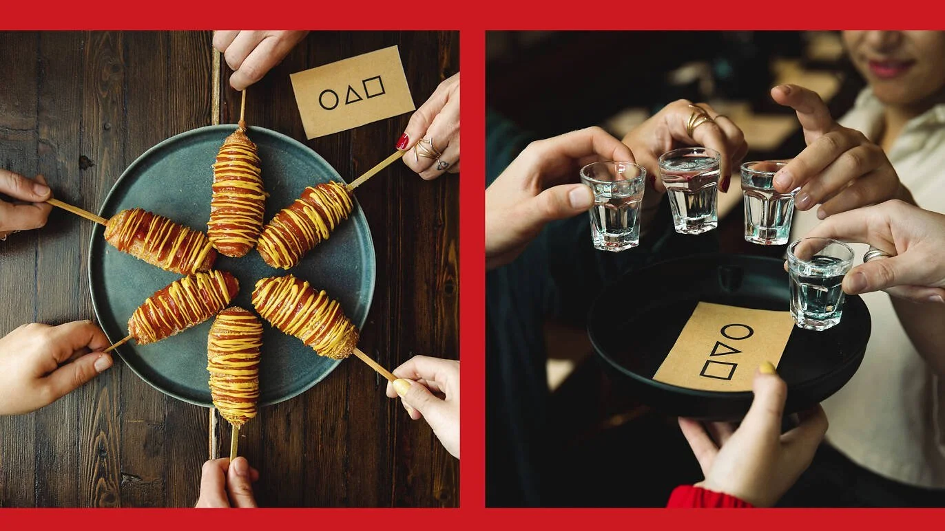 Korean Dinner Party i Soho, London har skapat en middagsupplevelse baserat på succéserien Squid Game. Den innehåller bland annat en ”corndog roulette” där alla vid bordet får en corndog, varav en är extra kryddstark.
